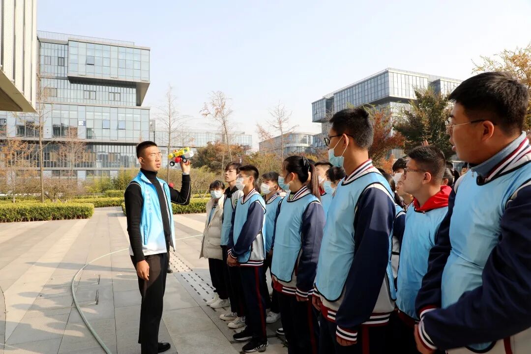 高一年级全体师生在综合楼前集合,执行校长牟庚国对研学活动提出注意事项。告诉大家珍惜本次研学的机会,在研学的过程中发现美好,充分感受科技的魅力。同时更要注意安全,开心研学,安全回家。