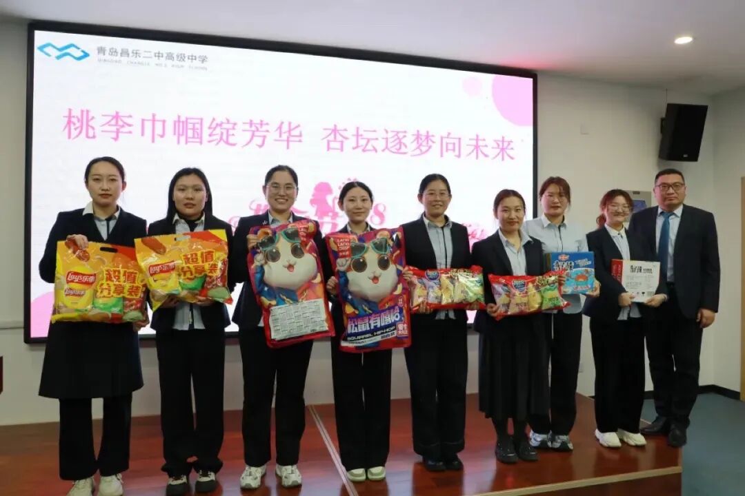 3月7日下午,青岛昌乐二中高级中学开展了一场温馨而热烈的三八妇女节庆祝活动,全校女教职员工齐聚一堂,共同度过了一段欢乐且难忘的时光。